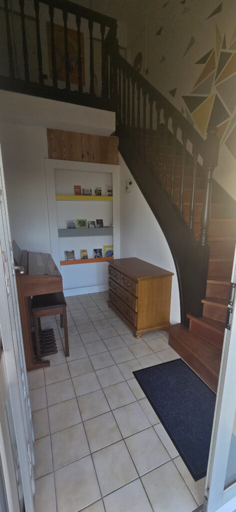 qui veut dire plage en breton est un petit salon qui se transforme en chambre lorsque cela est nécessaire. Elle est équipée d’un BZ qui devient un lit de 160×200, d’une télévision, d’un radiateur électrique, d’une petite table en verre et de deux tabourets, d’une commode, et d’un petit placard sous pente. Le wifi est disponible sur demande, sans supplément.